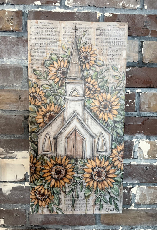 Sunflower and Hydrangea Church Canvas Print 11x14