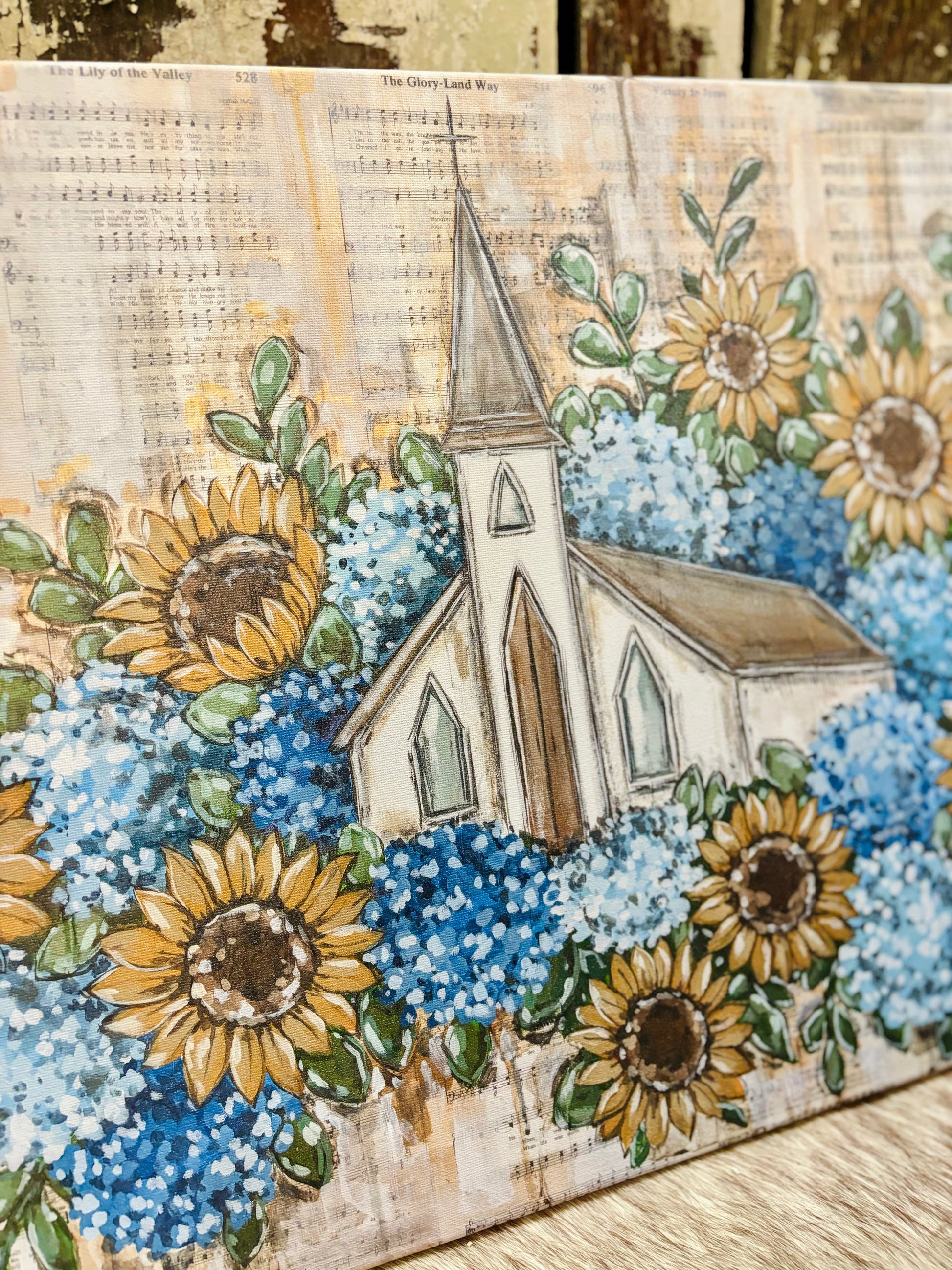 Sunflower and Hydrangea Church 8x10